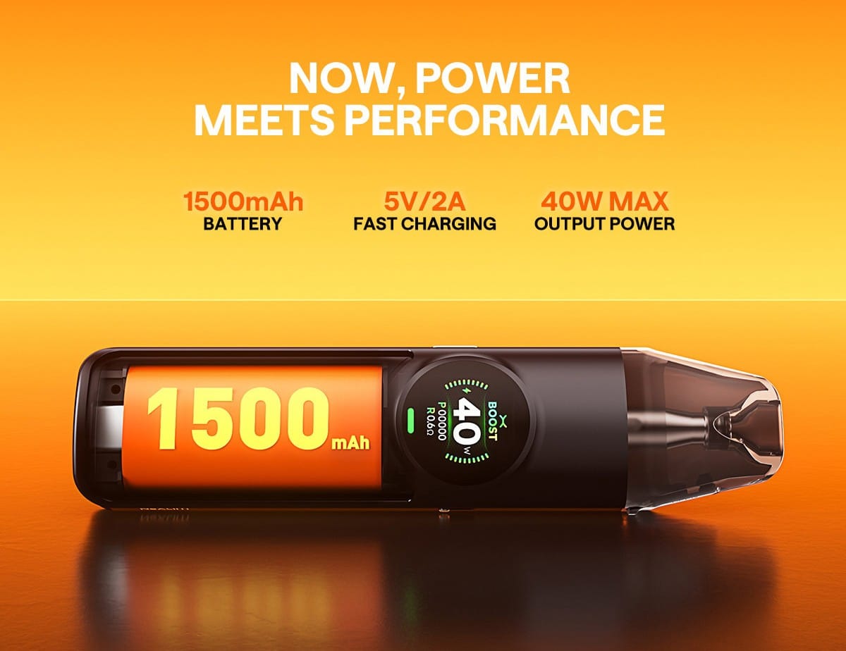 Με χωρητικότητα 4ml, μπαταρία 1500mAh, έγχρωμη οθόνη 0,85″ και παροχή ισχύς εξόδου έως και 40 watt.