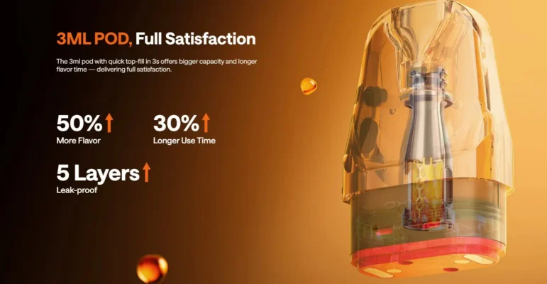 Το top-fill σύστημα σου επιτρέπει να γεμίζεις τη δεξαμενή των 3ml απλά, γρήγορα και χωρίς διαρροές. Το διαφανές tank του pod σε ενημερώνει άμεσα για το επίπεδο υγρού, ώστε να γνωρίζεις πότε θα χρειαστεί να γεμίσεις ξανά και να αποφύγεις τις στεγνές τζούρες.